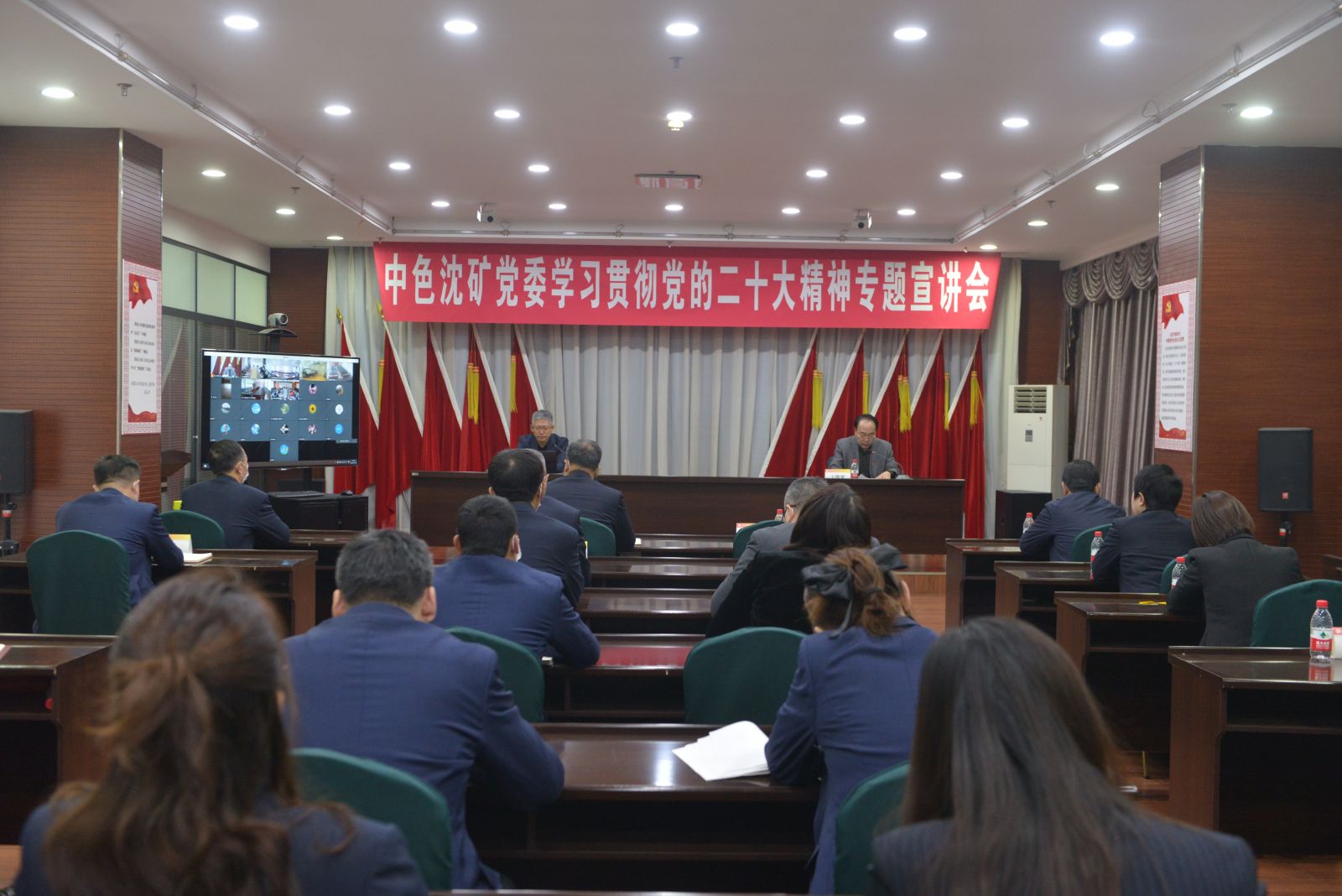 會議以現(xiàn)場+視頻形式召開,中色沈礦領(lǐng)導(dǎo)班子、總經(jīng)理助理、各部門負(fù)責(zé)人在主會場參會;各出資企業(yè)領(lǐng)導(dǎo)班子、各部門負(fù)責(zé)人、各黨支部書記在分會場參會。